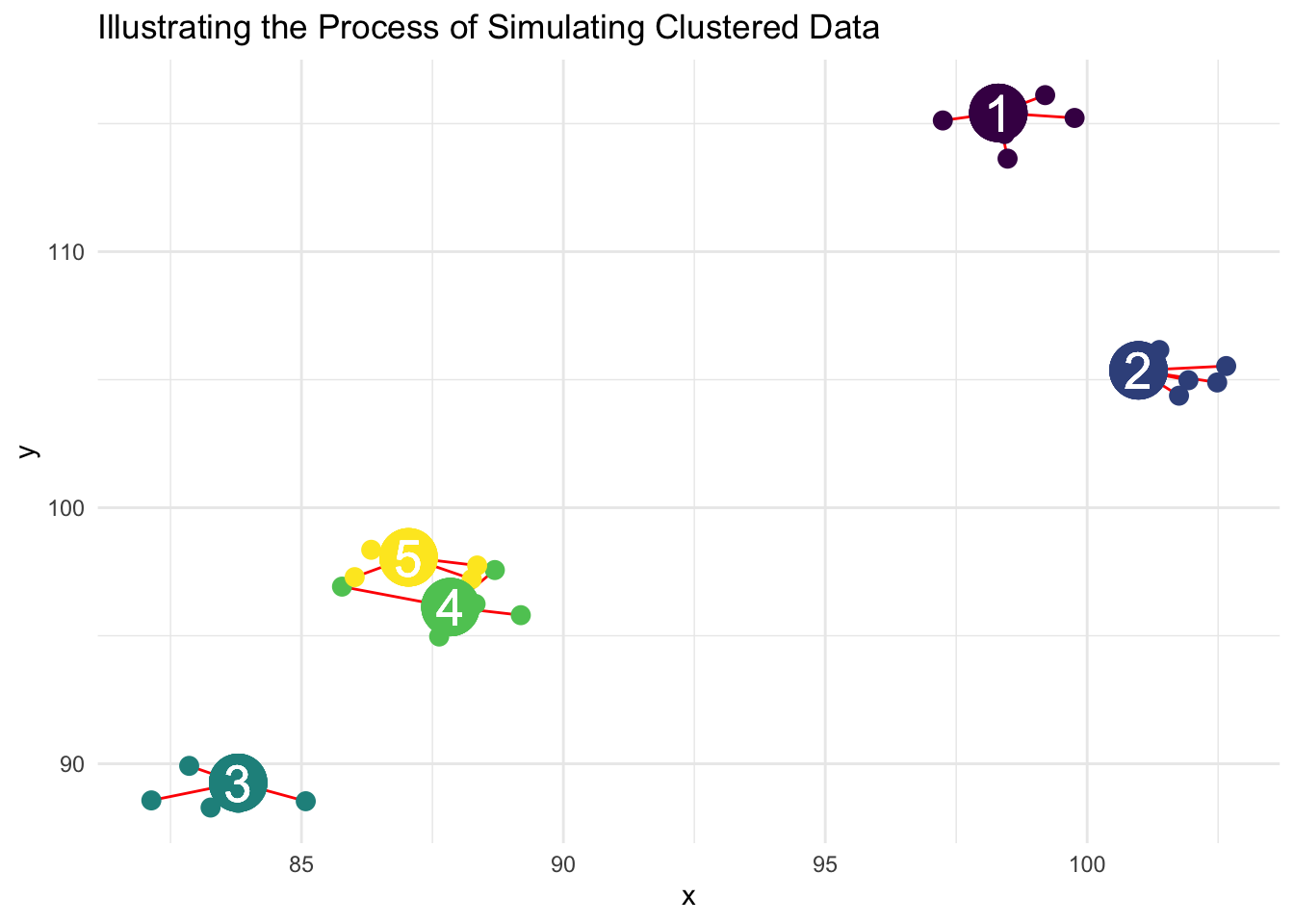 In contrast, an MLM analysis (correctly) finds that there is no statistically significant association of \(x\) and \(y\).