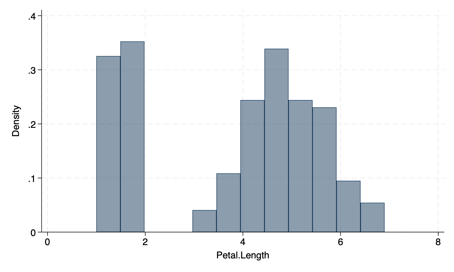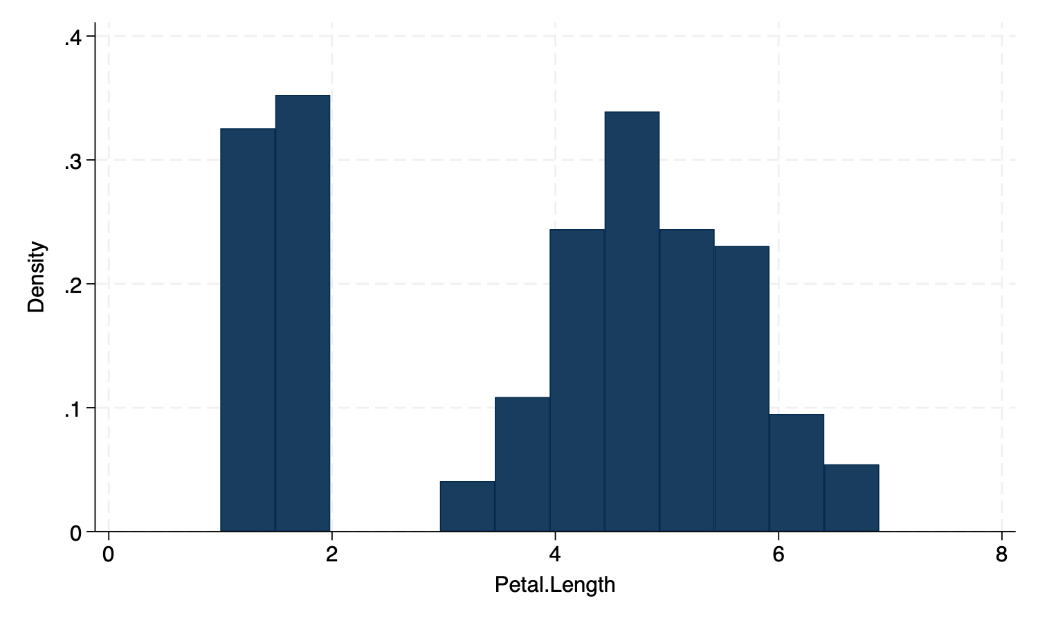 histogram Petal_Length, fcolor(%50) scheme(michigan)Bar Graph