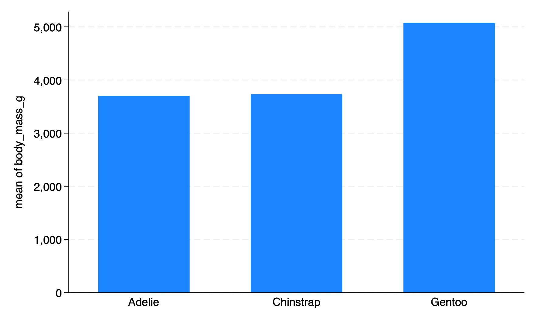 graph bar body_mass_g, over(species) // bar graph