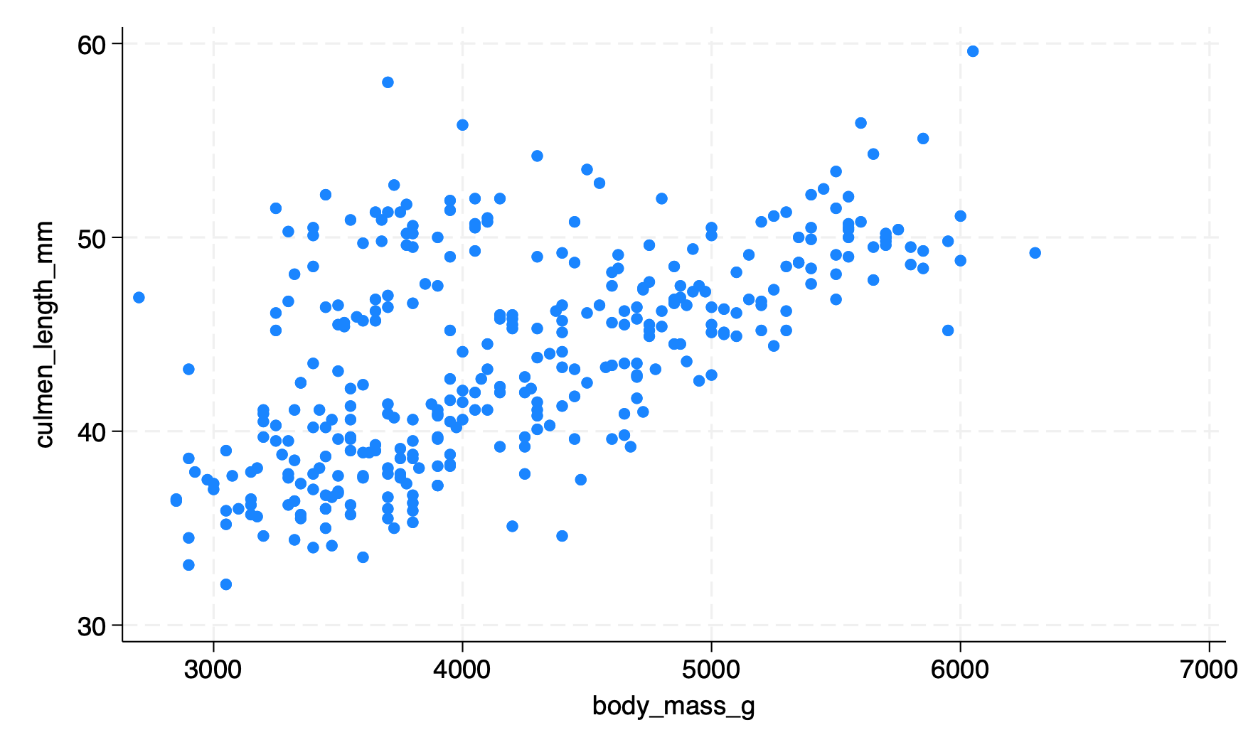 quietly: regress culmen_length_mm body_mass_g // regress culmen length on body mass